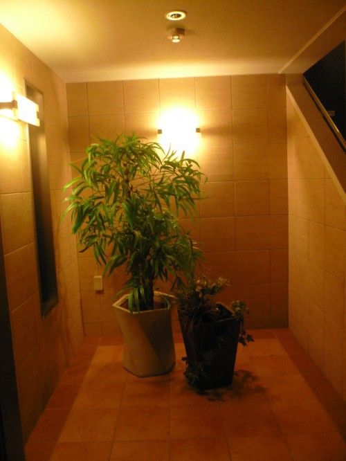 環境にも配慮 廊下にはLEDを使用し、普通の蛍光灯に比べると小虫があまり寄ってきません